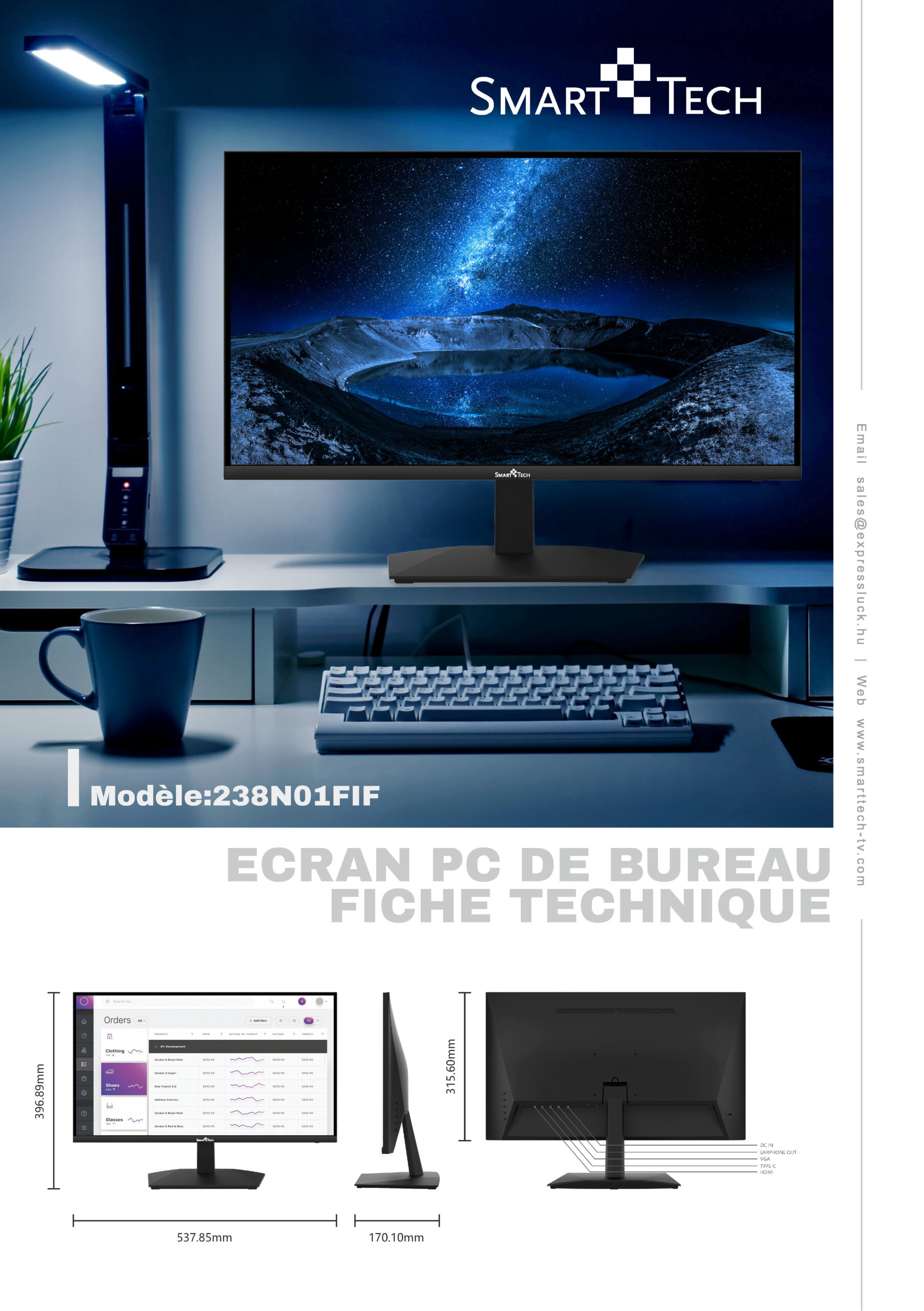 | Dimension with Stand(W*D*H) | 537.85*170.10*396.89mm | ||