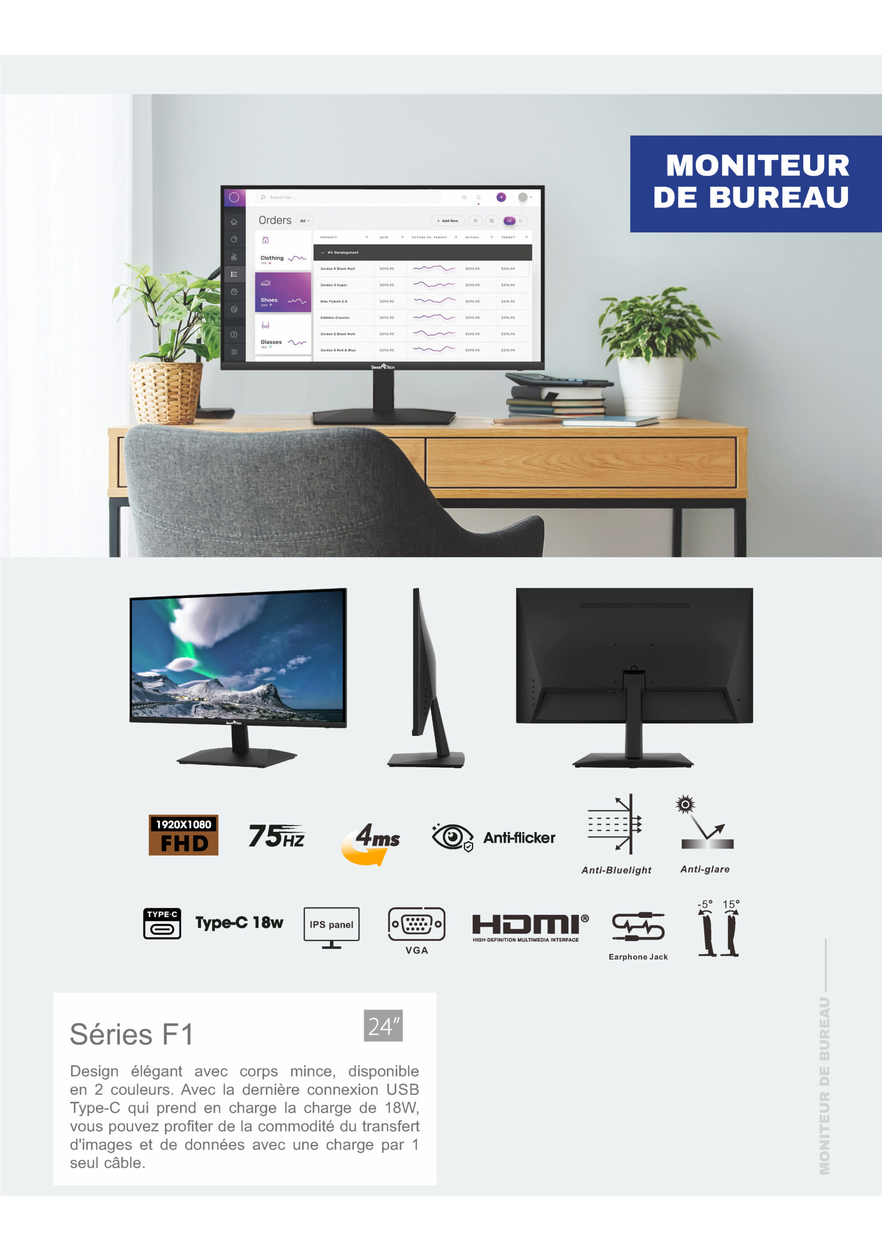 | VESA Mounting | 75*75 (screw hole: 4 holes with M4 x 8 mm) | ||